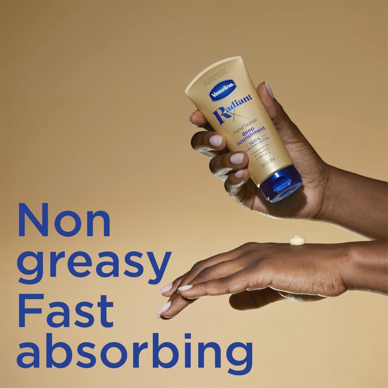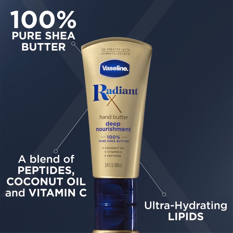 Vaseline Lotion, Radiant X Deep Nourishment Hand Butter - Shea Butter, Coconut Oil for Skin, Vitamin C, and Peptides Hand Lotion for Dry Skin, 3.4 Oz (Pack of 2)