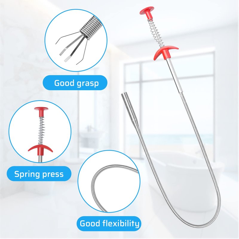 - Good Toughness - The stainless steel drain cleaner is about 24 inch long, ABS Plastic + stainless steel material has good toughness, has a claw to hold on to hair and other clogs, hooks out more residue, easily removes obstructions and unclogs clogged pipes.