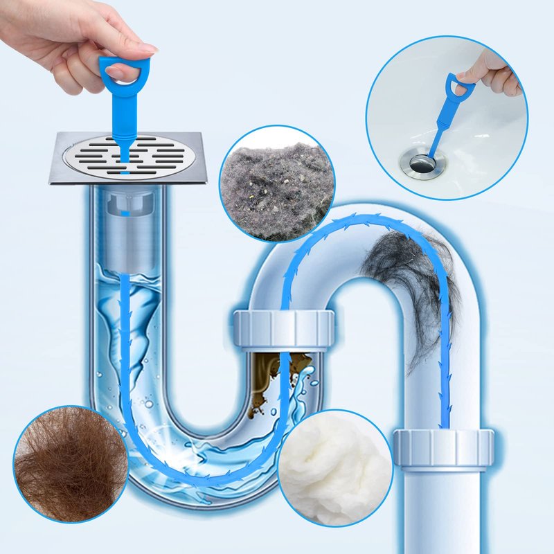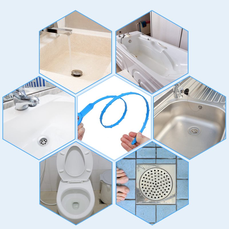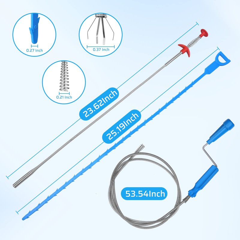- Meet Different Needs - Hair drain cleaner tool kit includes five blue drain-snake, a blue stainless steel drain cleaner and a blue drain cleaning brush, to meet diverse needs. Blue drain-snake length of 24 inch, width of 0.48 inch, enough to go deep into the sink pipe can remove difficult to clean bent residue, ABS plastic material soft and hard, easy to bend tucked into the pipe.