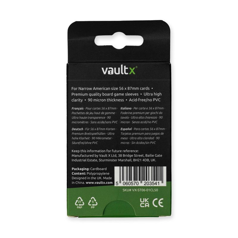 Vault X Narrow American Board Game Sleeves for Cards of 56x87mm Protect, Preserve with Non-PVC Anti-Static Fitted Sheath (50pcs)