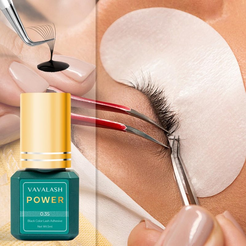 VAVALASH Eyelash Extension Glue Lash Extension Adhesive 0.3 Sec Drying Time Retention 9 Weeks Maximum Bond Lash Glue Long Lasting Black Eyelash Glue Professional Lash Artist Use Only (Power,5ml)
