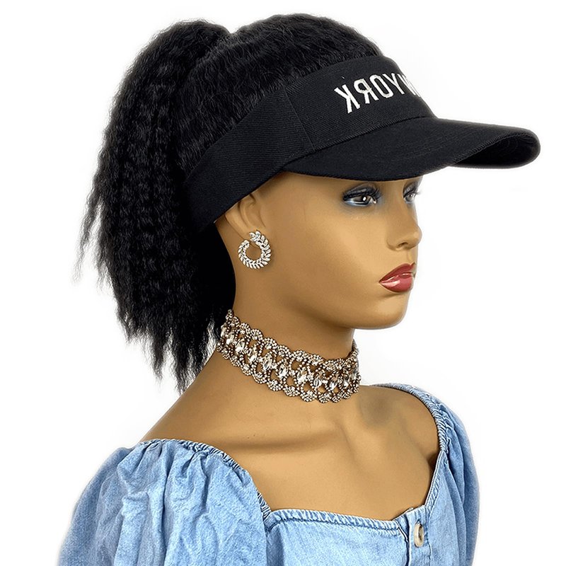 VAVANGA Hat Wig for Black Women - Black Hair with Hat Ponytail Wig Hat Baseball Cap Attached Hair Afro Kinky Yaki Hair Extensions Hat Wigs for Women(#1B, LD0315)