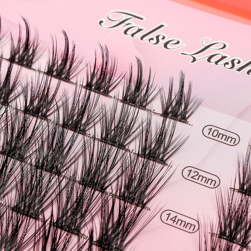 - This is our new false eyelashes,the single cluster is attached to the tape,it is easy to remove,the grafting effect is natural,the black is thick and layered,our eyelashes are fluffy and curled,slender and soft,and the small box is easy to carry.