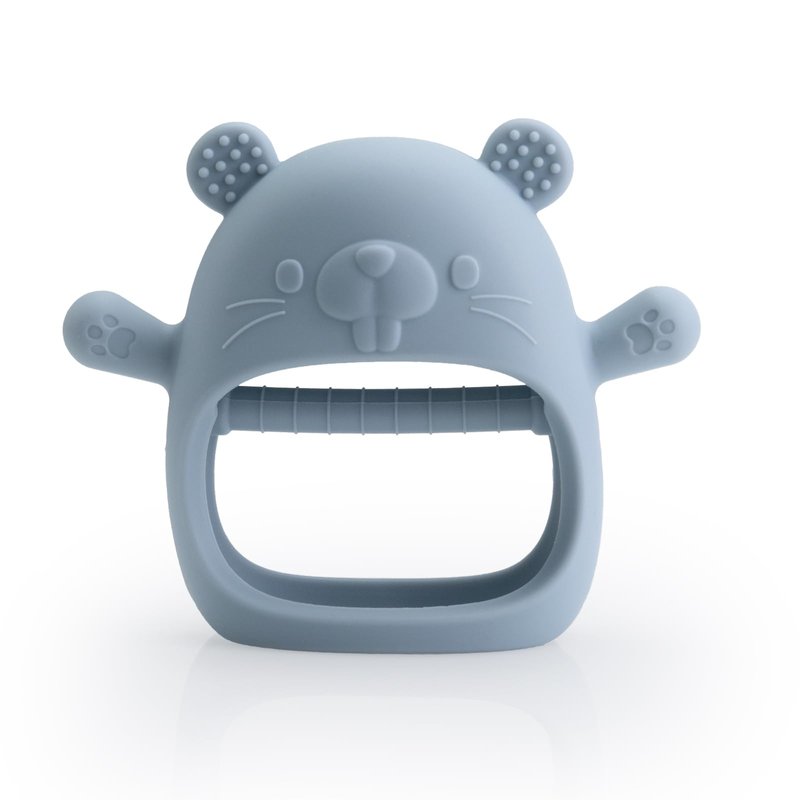 Vbglmya Silicone Baby Teether 6-12 Months,Infant Teether Easy to Hold Teething Rings for Babies 0-6 Months Teething Relief Toys for Baby,Groundhog Gloves Teether Dusty Blue