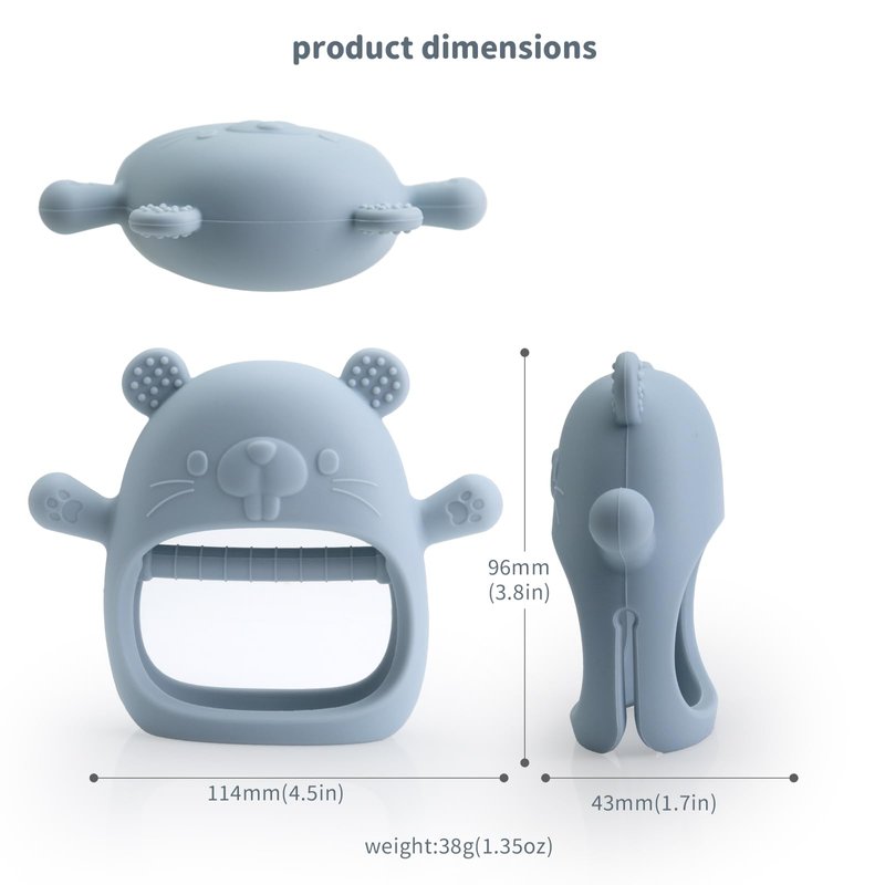 - Ease of holding: The ergonomic shape of our infant teether makes it easy for babies to grip and chew, helping them develop their fine motor skills.