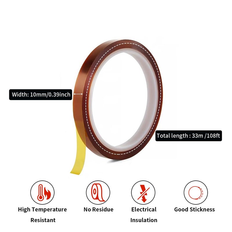 - ✅Premium Material - Kapton tape made of polyimide film,heat resistant up to 260℃(500℉) for half an hour.