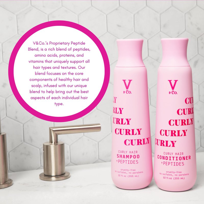 - INGREDIENTS: All V&Co. curly hair care products are Infused with our Proprietary Peptide Technology and jojoba oil