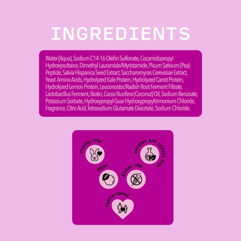 - WITHOUT: sulfates, parabens, phthalates, gluten, and dyes