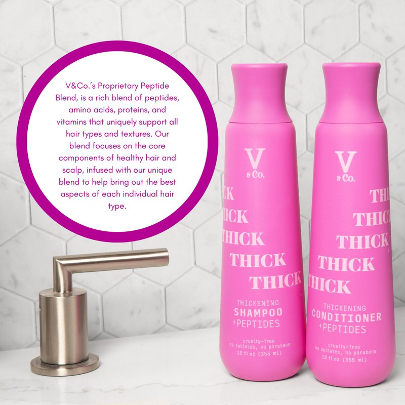 V&Co. Beauty Hair Thickening Shampoo with Peptide Technology, 12 oz, Formulated for All Hair Types