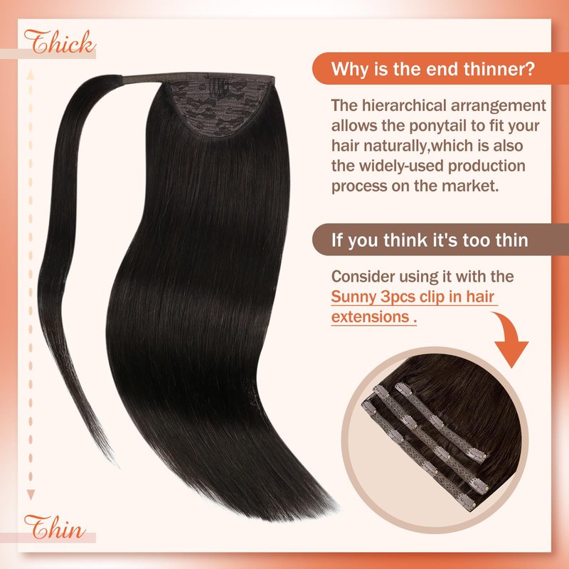 - Real Human Hair: Sunny Hair and Ve Sunny Hair belong to the same parent company; Our ponytail extension human hair are crafted from real human hair; They can be dyed, curled, treated for added strength, and styled in the same way as your natural hair