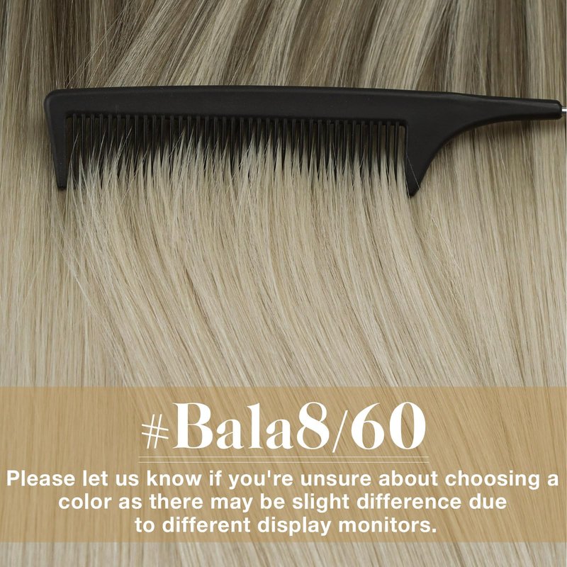 - 4. Hair Color: Ve Sunny human hair extensions tape in have different colors,you could try the different color to make balayage color hair style you like,due to different light,the hair may have color difference,if you are not sure about the color,please contact with us,then we could match the color for you.Addtionally,Our light color tape in hair extensions could only be dyed to darker color, and our dark color could not be bleached,if not,it would damage hair and shorten their lifespan.