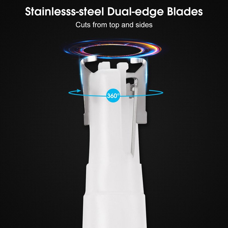 The Veagins NT11 person hair trimmer is equipped with uniquely curved, hypoallergenic, dual-edge stainless-steel blades. Perfect for clipping and trimming individual stray hairs on the face, nose, ear, upper lip hair and for use as a mustache and beard detail trimmer, without irritating skin or pulling hairs.