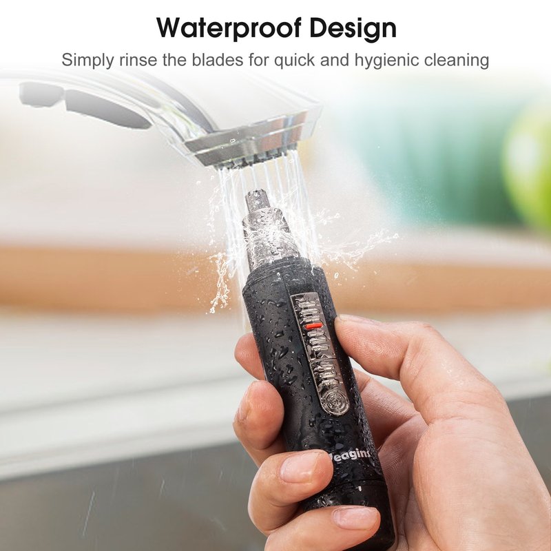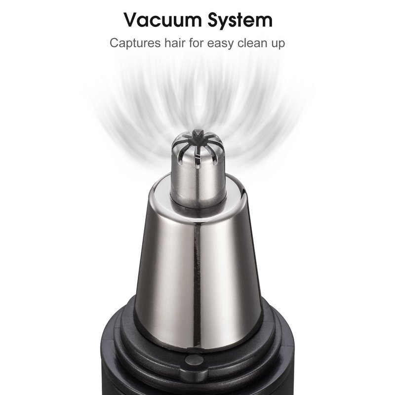 Veagins men’s nose trimmer features an advanced micro-vacuum system designed to quickly and neatly collect and deposit nose, ear and other trimmed hair particles into an easy-clean collection chamber, and keep the ears and nose free of debris.