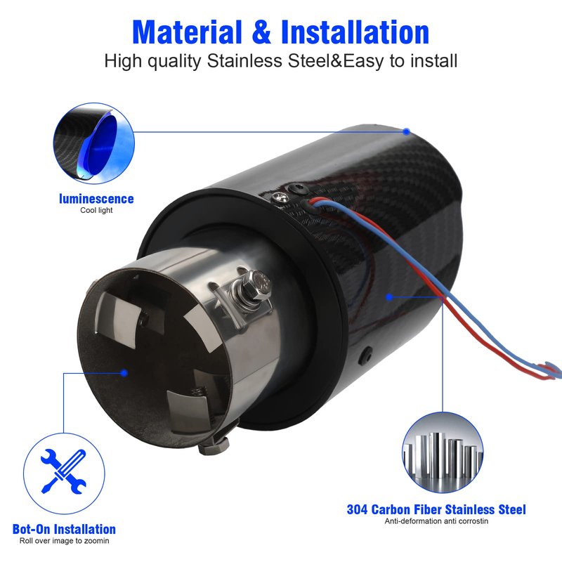 - 【Illuminated Exhaust Pipe】 Fashionable and dazzling, high temperature resistant LED lamp, there will be blue flame effect after installation, and it is very cool at night.Creative design with LED lights can produce amazing visual effects. I believe you will fall in love with it.