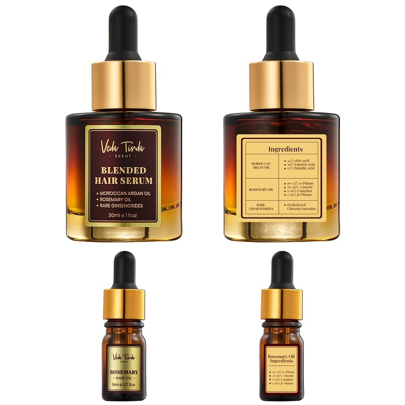VEDA TINDA SCENT Rosemary Hair Oil 5ml & Moroccan Argan Hair Oil 30ml & Comb Gift Set