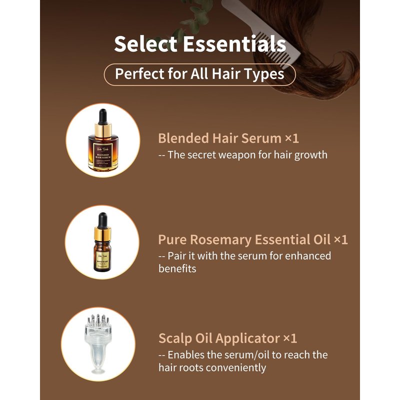 - Improves Overall Scalp Health: A healthy life starts with healthy hair. Our hair treatment kit provides you with a safe, gentle yet effective solution for scalp care and hair growth. The 3 Select Essentials (1 hair serum +1 hair oil +1 hair oiling applicator) are perfectly paired and easy to use.