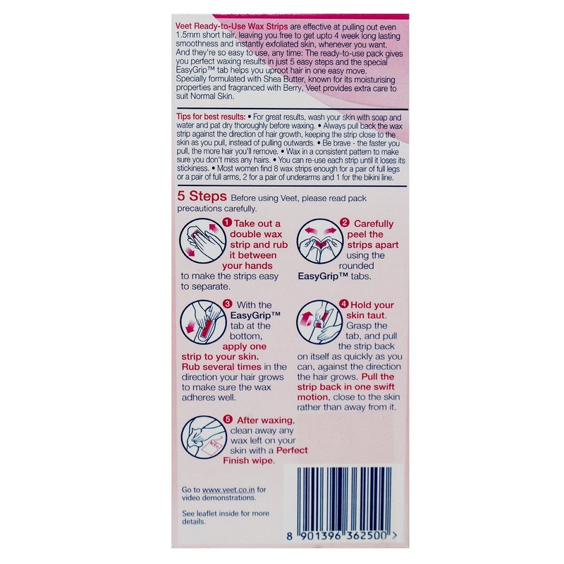 - Veet Cold Easy Grip ready to use Wax Strips Normal Skin