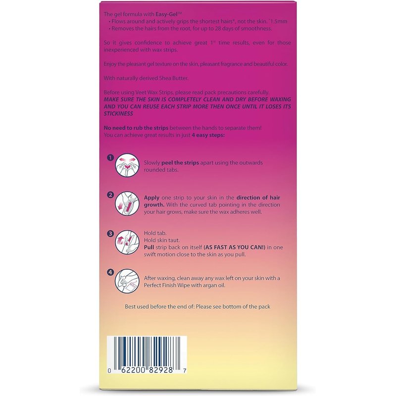 Tired of razor bumps, stubble, and ingrown hairs? Wish you could achieve salon-smooth skin from the comfort of your own home? Introducing the Veet Ready-To-Use Wax Strip Kit - your one-stop solution for effortlessly silky legs and body in minutes. No more messy wax pots or complicated prep. These pre-coated strips are ready to go whenever you are. Simply warm them between your hands, apply, and smooth away unwanted hair in one swift motion.