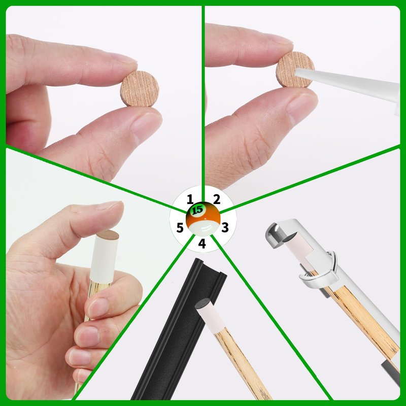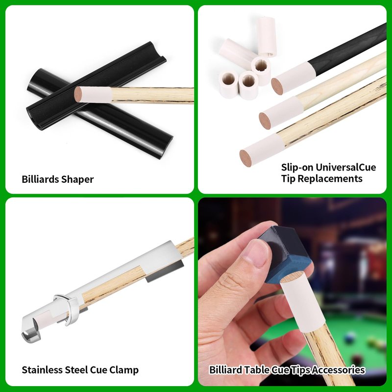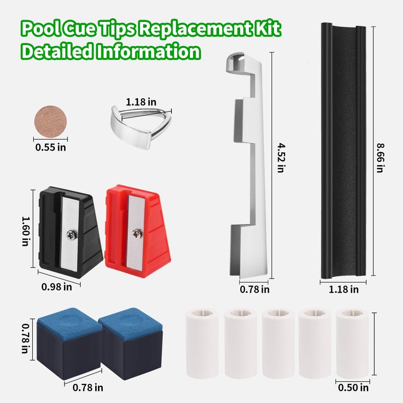 - 【38pcs Pool Cue Repair Kit】This Pool Cue Repair Kit includes 2 Pool Cue Tip Clamp, 20 Billiard Cue Tips, 5 Billiards Shaper,5 Chalk Cubes for Billiard, 5 Pool Cue Ferrules, 2 Planers for Billiard Table Cue Tips Accessories. Complete variety, sufficient quantity, enough to use for a long time.