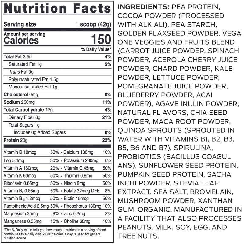 - CERTIFIED USDA ORGANIC protein powder is vegan, vegetarian, gluten-free, and Non-GMO Project verified. Vega Organic All-In-One Shake has no grains, no added sugar, and no artificial flavors.