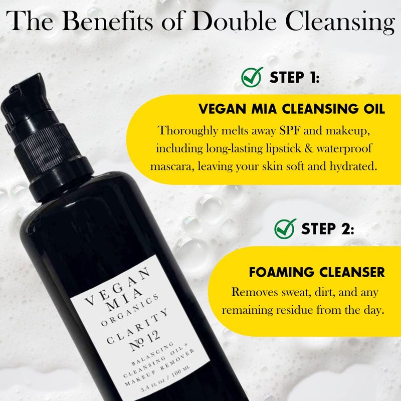 - The Benefits of Double Cleansing: Using our makeup remover cleaningsing oil, it melts away thoroughly the SPF and makeup, including long-lasting lipstick & waterproof mascara, leaving your skin soft and hydrated. Then, use foaming cleanser to remove dirt, and any remaining residue from the day!