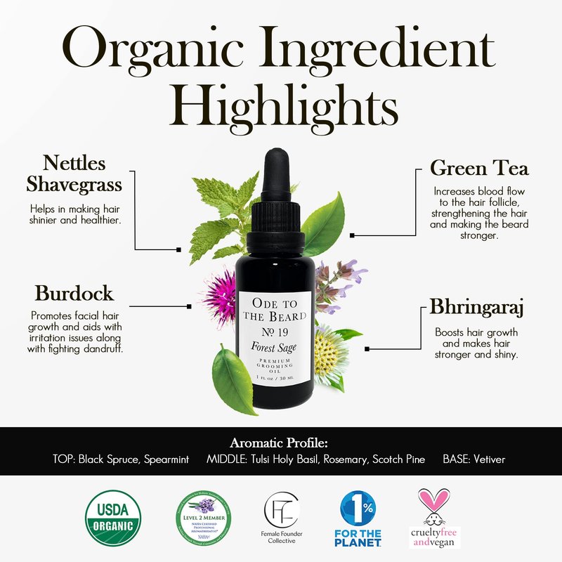 - Truly Natural Beard Care: For well-maintained facial hair, make Forest Sage Premium men’s beard oil a part of your beard grooming kit. Vegan and cruelty-free, it has no parabens, formaldehyde, phthalates, fillers and other harmful ingredients.