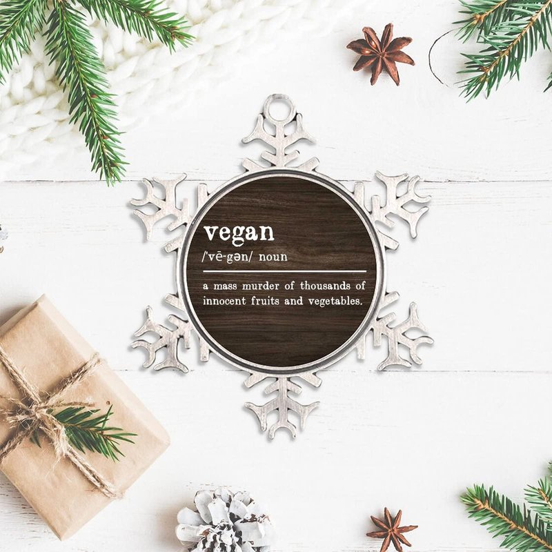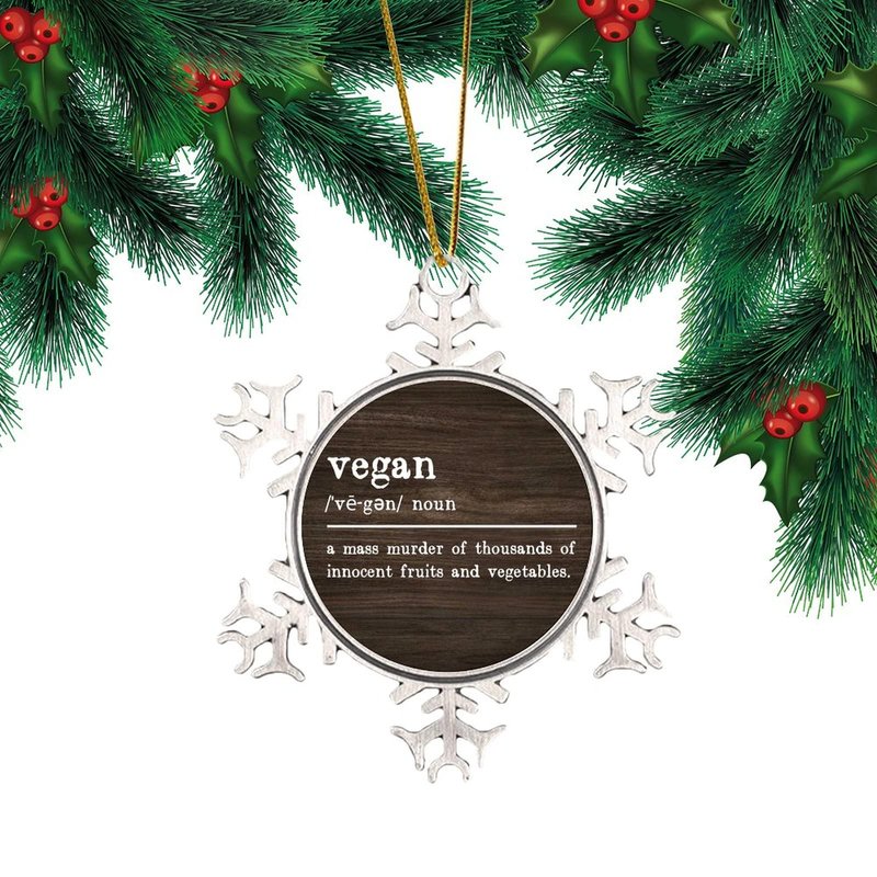 Vegan Noun Definition Snowflake Ornaments Concept Text Typography Frame Silver Christmas Ornament Xmas Party Decorations Funny Quotes & Sayings Custom Christmas Bauble for Friends Families