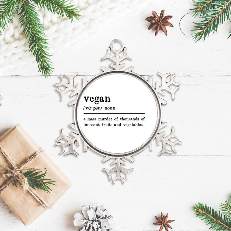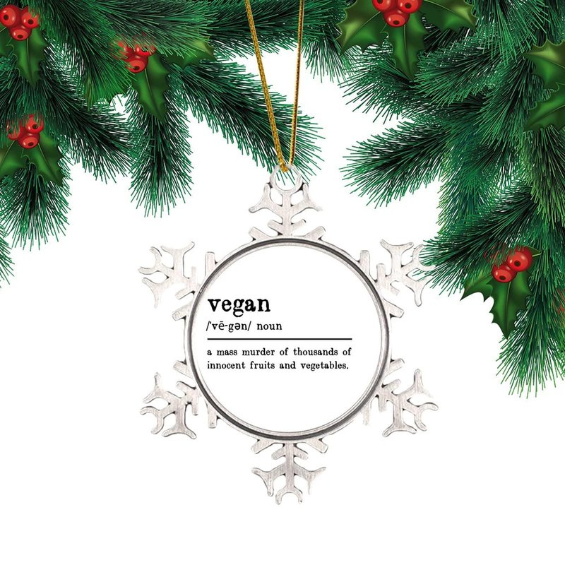 Vegan Noun Definition Snowflake Ornaments Round Christmas Tree Ornament Meaning Description Rustic Keepsake Words with Definition Collectible Gift for Holiday Decoration