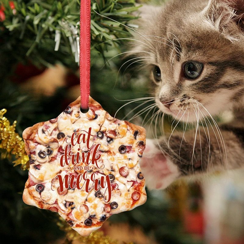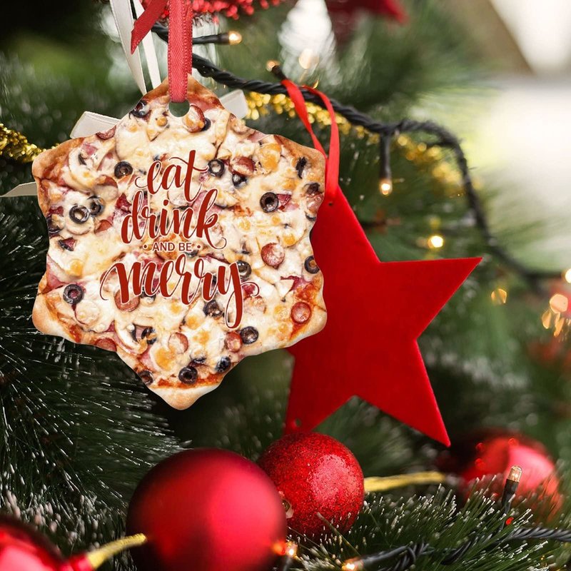 Vegan Truffle Pizza Christmas Ornaments Funny Food Christmas Tree Ornaments Ceramic Round Pizza Personalized Christmas Ornaments 2022 Keepsake Christmas Decor, 3 inch
