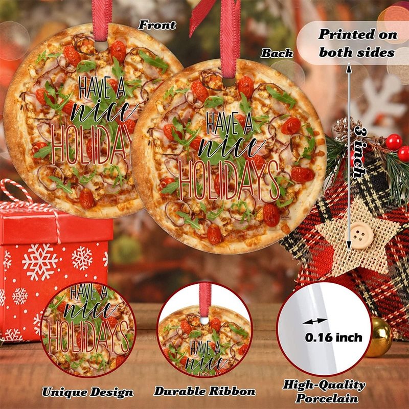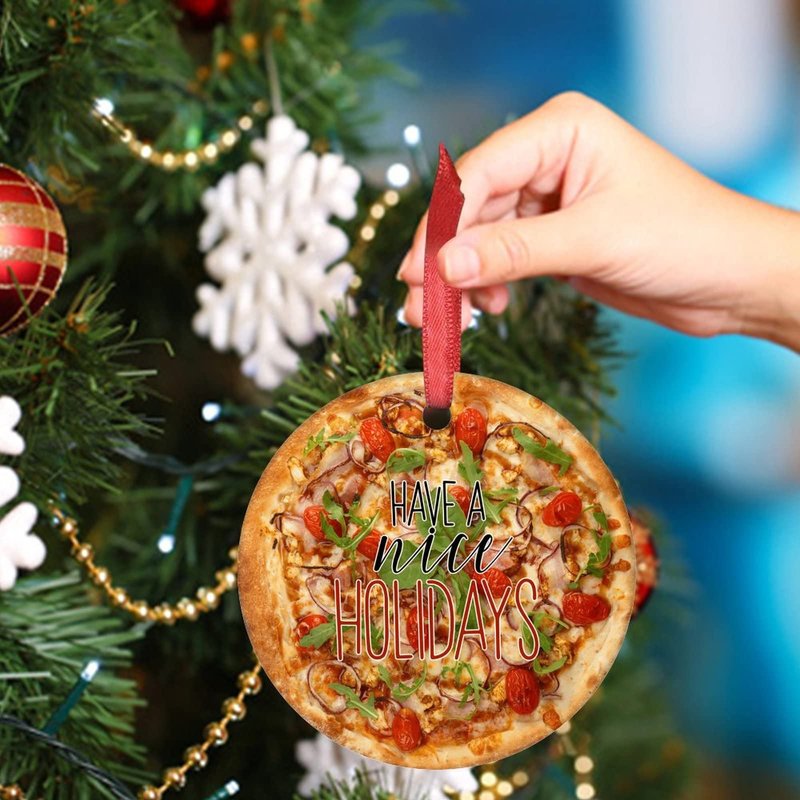 Vegan Truffle Pizza Christmas Ornaments Personalized Christmas Ornaments 2023 Funny Food Christmas Tree Ornaments Hanging Ornaments Holiday Christmas Keepsake New Year Gifts, 3 Inch