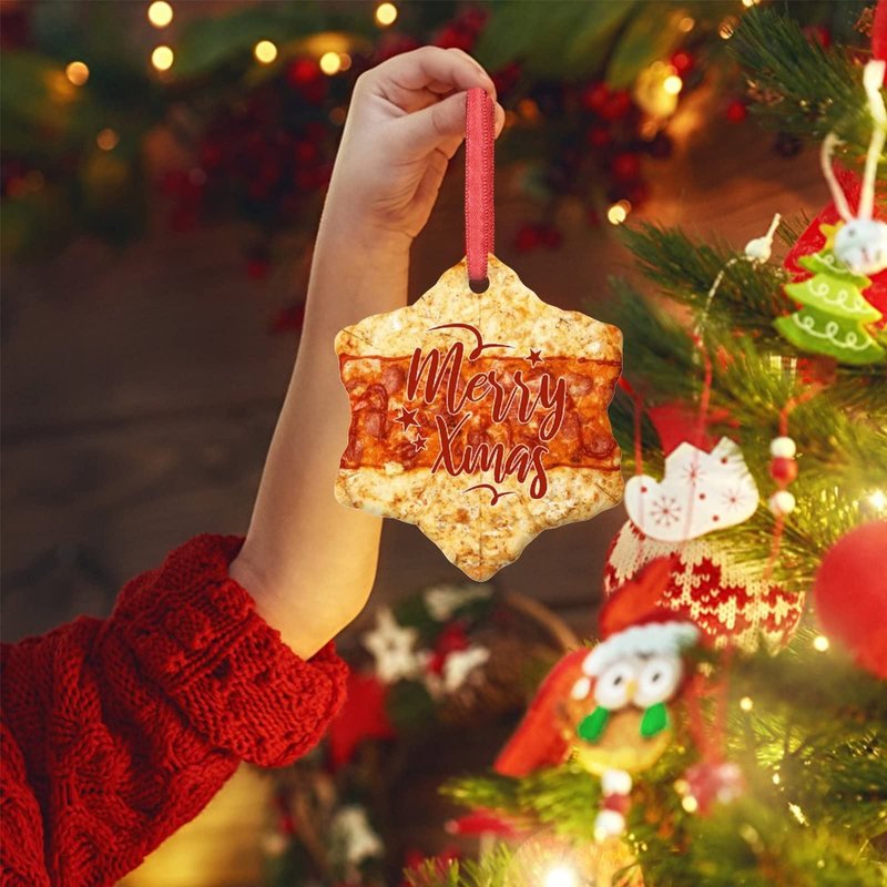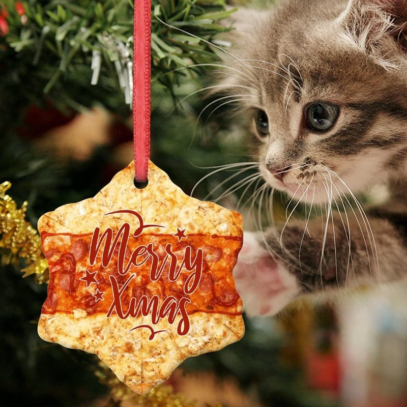 Vegan Truffle Pizza Christmas Ornaments Snack Food Christmas Decorations for Tree Ceramic Round Pizza Personalized Christmas Ornaments 2022 Keepsake Christmas Decor, 3 inch