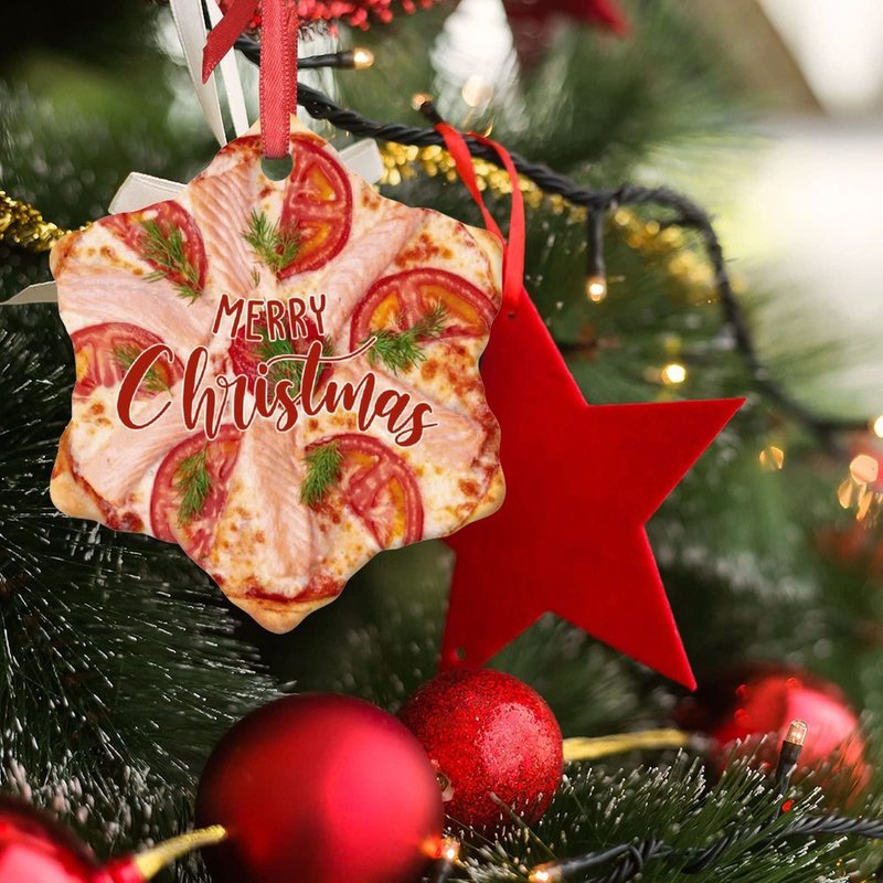Vegan Veggie Cheese Pizza Christmas Ornaments 2022 Cute Food Ornaments for Christmas Trees Pizza Personalized Christmas Ornaments Holiday Christmas Keepsake New Year Gifts for Friends , 3 inch