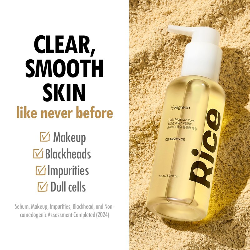 - PORE-CLARIFYING BLEND. Unlock the secret to smooth and clear skin with VEGREEN Rice Daily Moisture oil face cleanser. Ideal for all skin types, this lightweight Korean oil cleanser effectively regulates sebum production to minimize the appearance of pores for refined and radiant skin.
