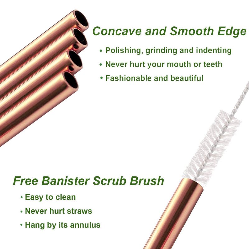 - 1 FREE SCRUB BRUSH & EASY TO CLEAN: Come with 1 special scrub brush, with this banister brush, you can clean your stainless steel straws more easily and never worry about hurting your drinking steel straws. You can also hang the brush easily by its annulus at the end. To clean the stainless steel straws, you just need to hold the handle of the brush and let nylon bristles come into the stainless straws, the brush is of the perfect size for these drinking straws.