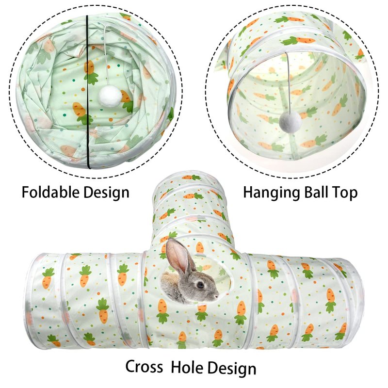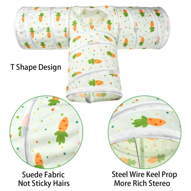 Vehomy Bunny Rabbit Tunnels Rabbit Cat 3 Way Collapsible Tunnel with Cute Carrot Patterns Small Pet Hideout Activity Tunnel Tube Toy for Bunny Kitten Cat Dwarf Guinea Pig T Shape