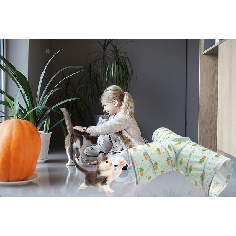 - 【Attentive Details】Our small pet tunnel is connected by tubes in three directions with 3 entrances. Compare with single tunnel, it's more challenging to burrow and explore for cats rabbits. On the top of the cat tunnel tube, there is a peephole that you can watch your pet play in it. The hanging ball on the front entrance arouse your cat or rabbit to catch it.