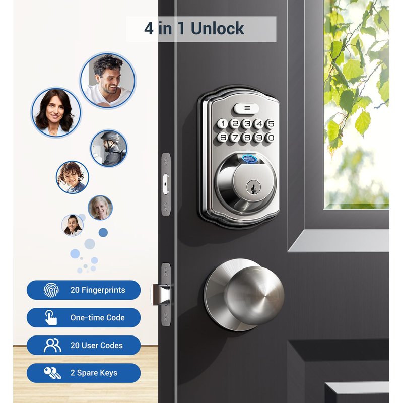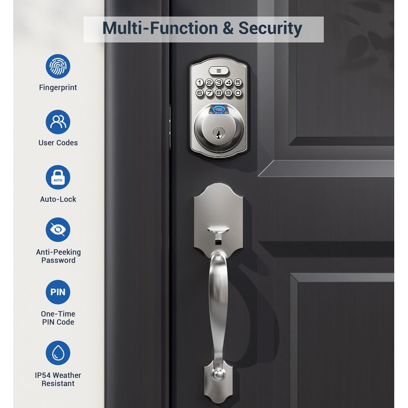 Veise Fingerprint Door Lock, Keyless Entry Door Lock, Electronic Keypad Deadbolt, Biometric Smart Locks for Front Door, Auto Lock, Anti-Peeking Password, Easy Install, Satin Nickel