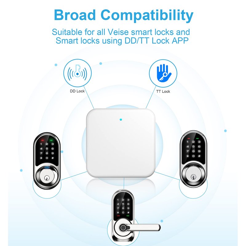 - Compatibility: Veise G2 Wifi gateway is compatible with smart locks using DD lock App/TT Lock App, one gateway can be paired with multiple door locks of the same account.