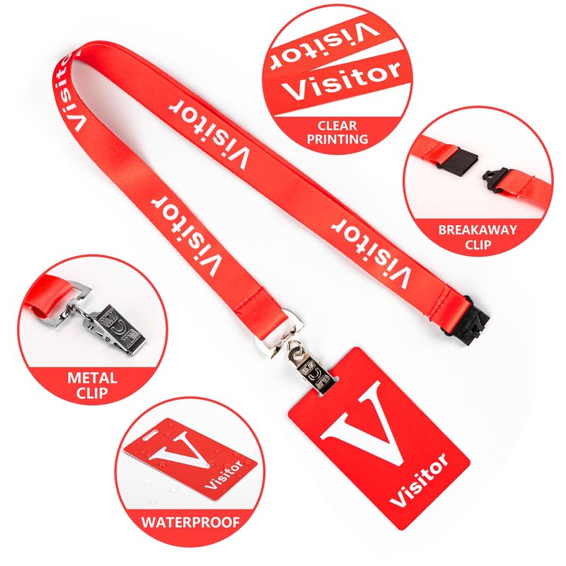 - 【Quality Materials】Our visitor lanyard is made of polyester and metal clamp clip,soft and comfortable to wear,not easy to fade,break or tear.The badge is made of waterproof PVC,which is not easy to break,deform or fade and can be applied for a long time.