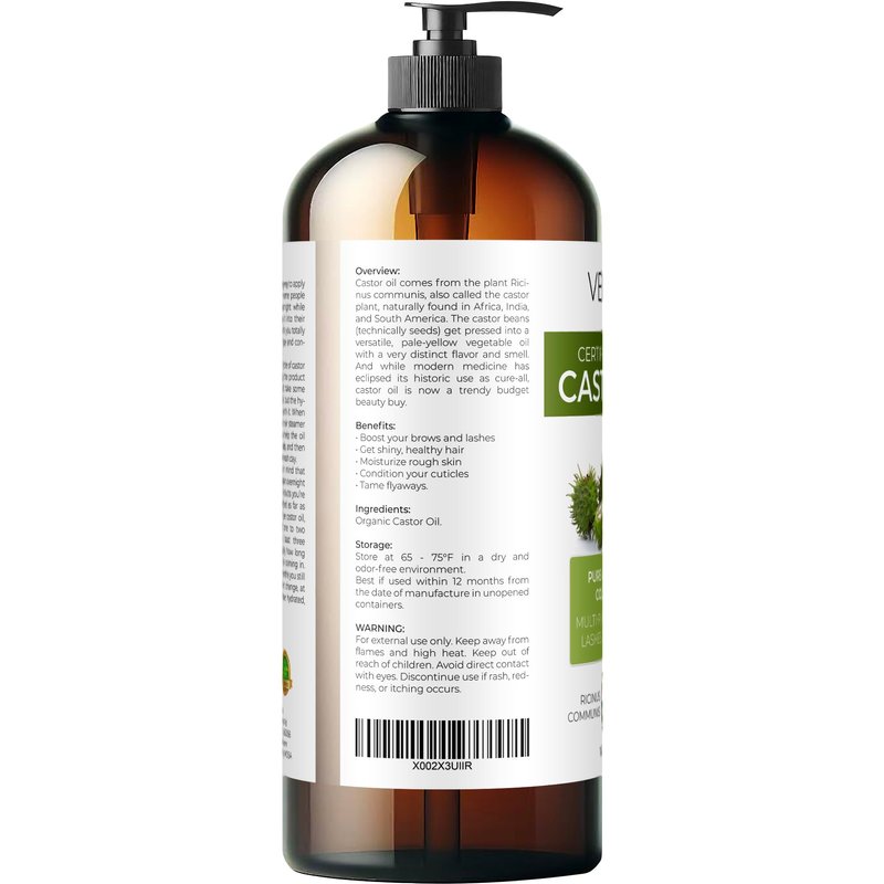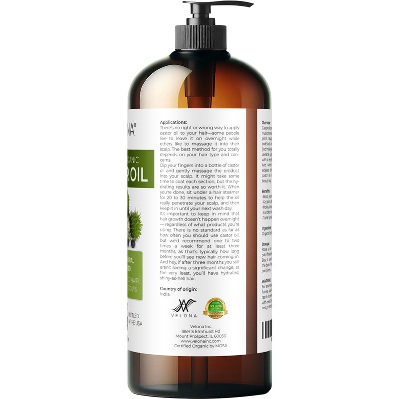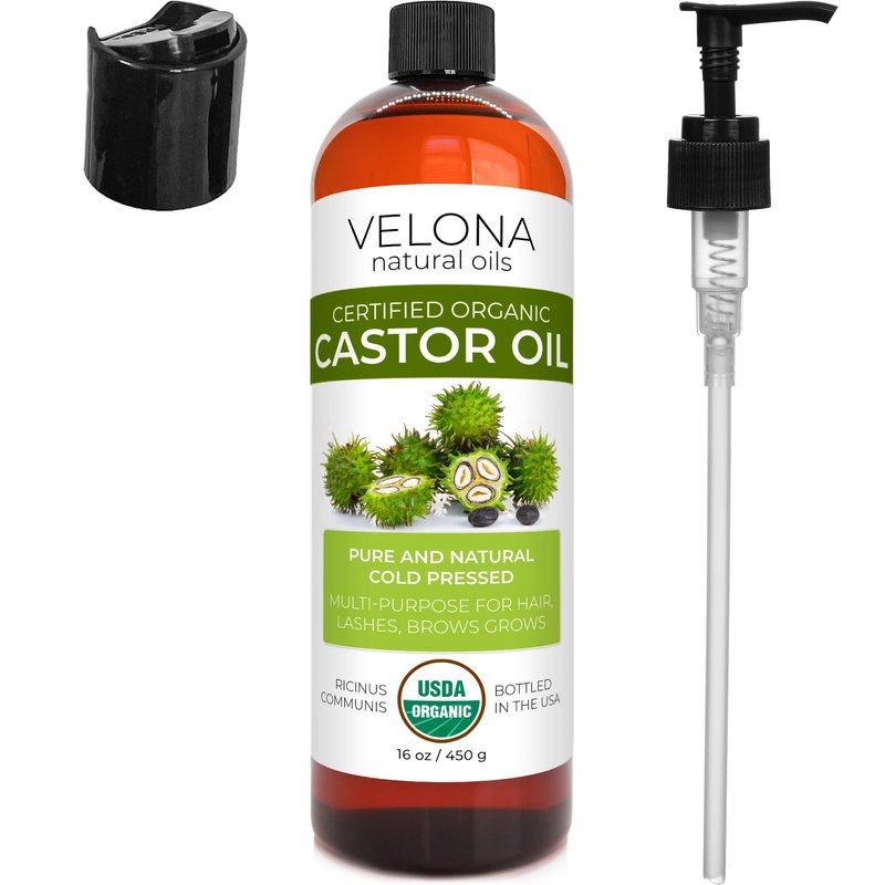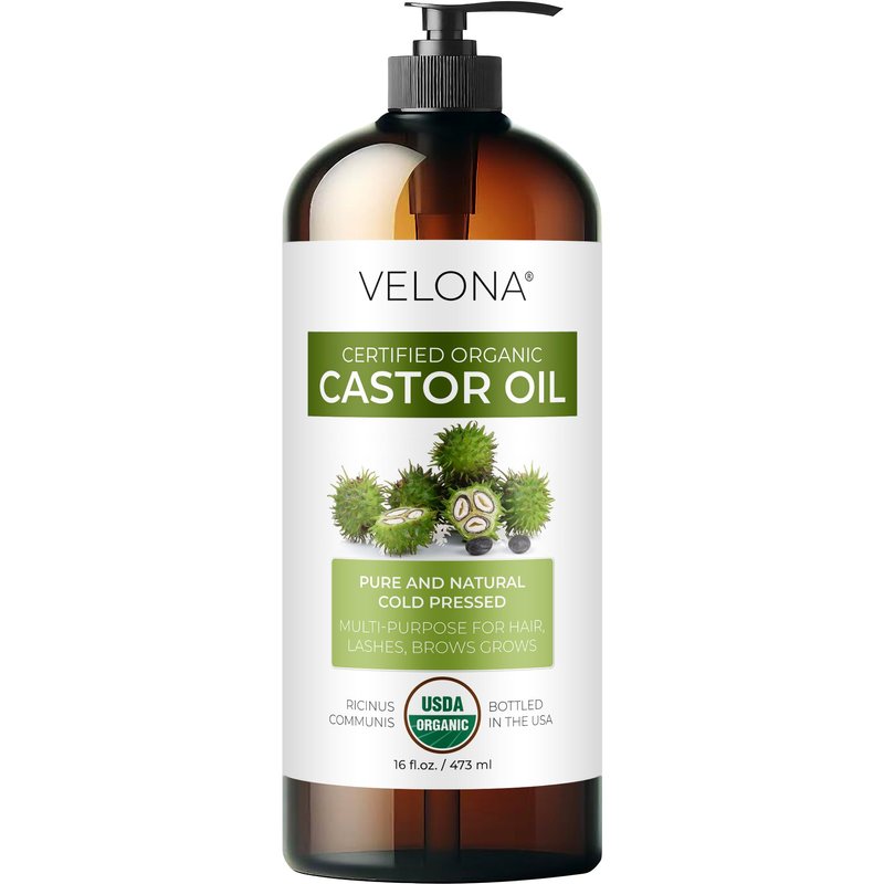 velona USDA Certified Organic Castor Oil - 16 oz (With Pump) | For Hair Growth, Boost Eyelashes, Eyebrows | Cold pressed, Natural Oil, USP Grade | Hexane Free, Lash Serum, Caster