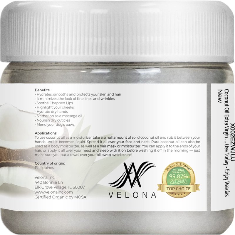 velona USDA Certified Organic Coconut Oil Extra Virgin - 2 fl oz | Food and Cosmetic Grade | in jar | Extra Virgin, Cold Pressed