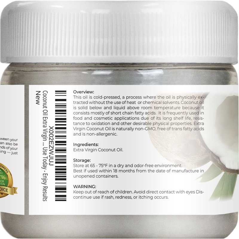 - 100% Satisfaction Guarantee. If you are not fully satisfied with our Coconut Extra Virgin oil, we will gladly replace it or issue you a full refund.