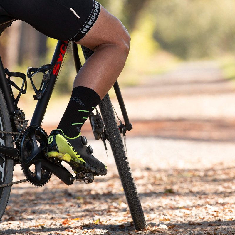 veloToze Cycling Socks with Active Compression are designed to help you perform your best while cycling. The compression level is designed to help manage blood flow to your feet while you ride. The Merino Wool blend naturally wicks away sweat to keep feet dry in summer and warm in winter. Merino Wool also naturally prevents that funky cycling shoe smell. They are designed to be worn alone or with veloToze Shoe Covers. Whether you are racing, training or commuting, veloToze Cycling Socks will keep your feet dry and comfortable.