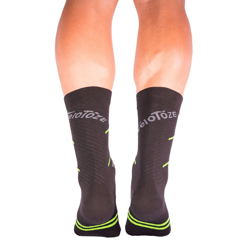 veloToze Cycling Sock - Active Compression with Merino Wool Blend - Black/Yellow Small/Medium
