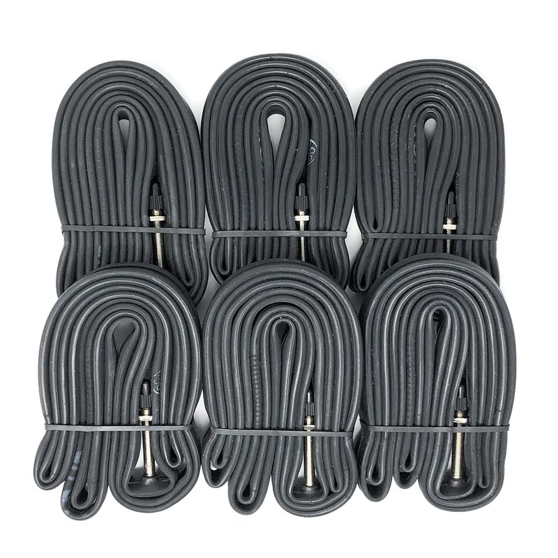 VeloTubes premium road bike inner tubes made with high quality butyl rubber - 48mm Presta (French) Valve - Bulk 6-pack. Each tube is individually tested for 24 hours.