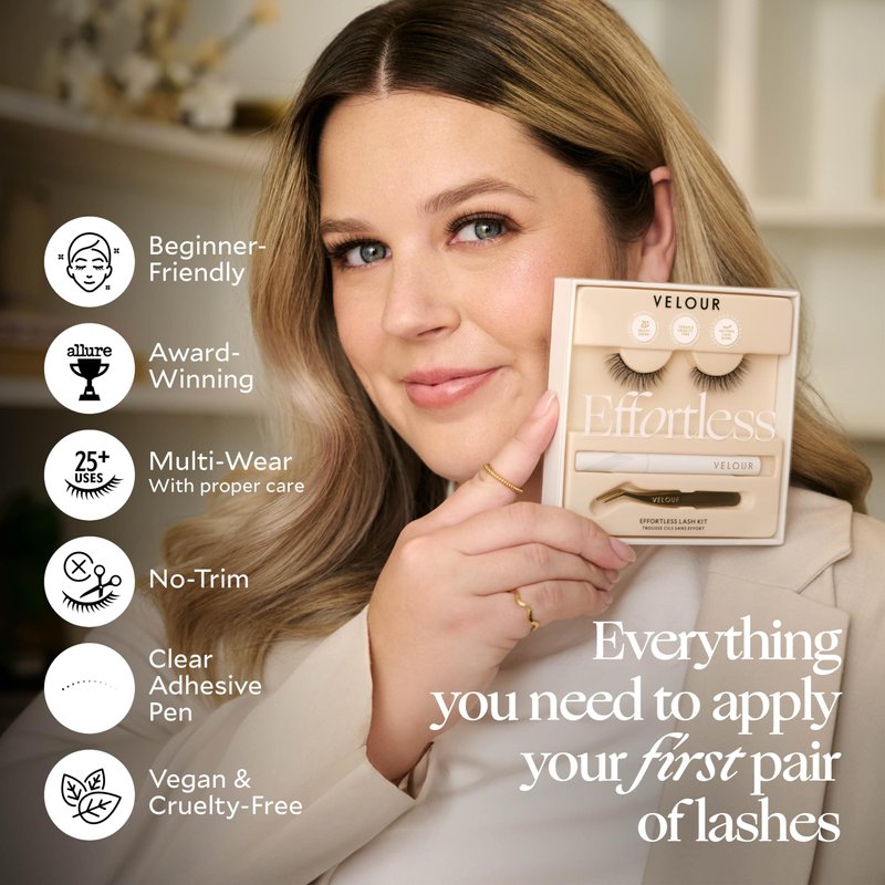 Velour Effortless Lash Kit - False Lashes + Lash Applicator + Eyelash Glue - Reusable 25+ Times - Natural-Looking False Eyelashes - Fluffy & Lightweight No-Trim Lashes - Fake Lashes for All Eye Shapes