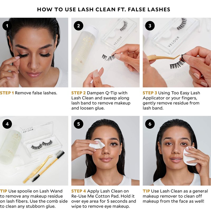 Velour Lash Clean - Oil Free Liquid Makeup Remover for Eyes, False Lashes, and Face - Gentle and Vegan (50 ml)