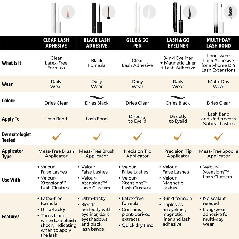 - HOW TO USE THIS LASH GLUE: Once you've measured and trimmed your lashes as needed - Using Velour Lash Adhesive, brush a thin layer of lash glue to the lash band. Add a little extra to the corners for extra hold. Proceed with false lash application