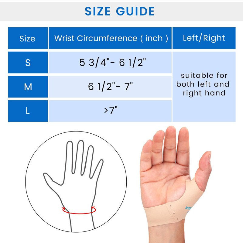 - 【NOTE】Please double-check your selection and refer to the size chart for a proper fit. If you find yourself between two sizes, opt for the smaller size for better compression on the thumb/wrist area, especially when used with other VELPEAU support braces.