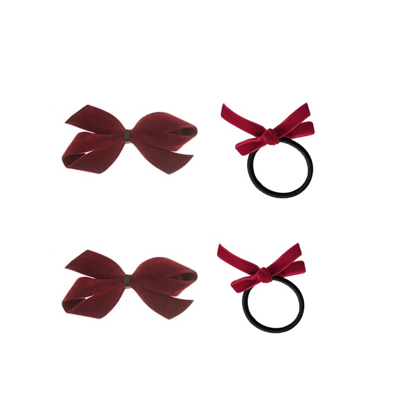 - Gift pack of 4- 2pcs red velvet bow hair clips and 2 pcs velvet hairbow ties are suitable for any fall,winter,early spring outfit, make your everyday outfit even more glamorous; sturdy with good clip teeth and elastic hair bands to hold hair in place and is comfortable to wear. Don't worry about thick or thin hair falling out.